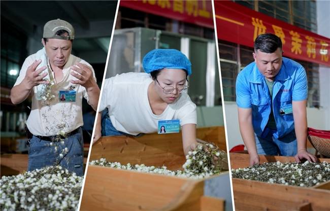 开赛仪式后,赛场随即进入紧张有序的竞技状态——选手们专注投入:或指尖轻捻,细心筛选茉莉鲜花、剔除杂质;或俯身调控,精准把握窨制温度、细嗅茶花香韵的融合度;或熟练翻动茶堆,确保香气均匀吸附。每一个动作,都彰显着对传统工艺的敬畏与娴熟。