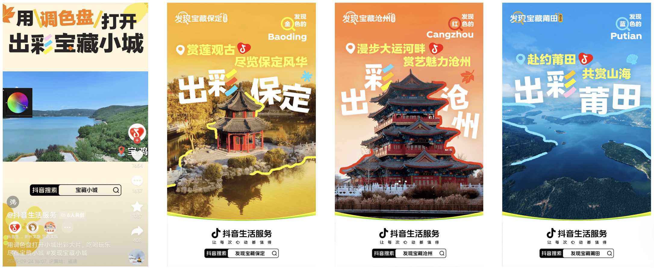 与此同时,「发现宝藏小城-超出彩」还为每座城市量身打造了“色彩名片”。保定泛着金辉的古莲花池、沧州的绛色清风楼、莆田一卷无边的蓝色画布……在色彩指引下,每座城市的出游目标都美不胜收,不少有着选择困难症的用户,都很快锁定了目的地。