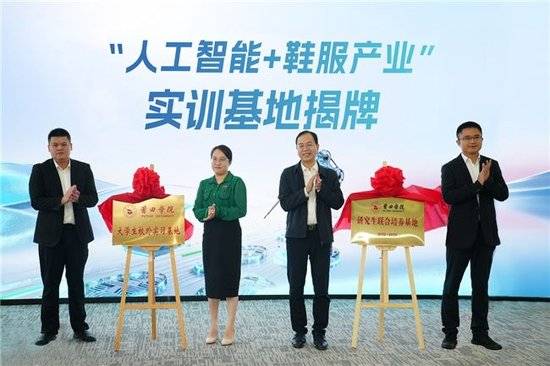 为推动人工智能与鞋服产业广泛深度融合,重塑鞋服工厂生产全新范式,在政府、企业、高校与金融机构等多方协同下,会议现场召开了“人工智能+鞋服产业”应用试点启动仪式,助力加快形成人机协同、跨界融合、共创分享的智能经济和智能社会新形态。同时,为促进“人工智能+鞋服产业”复合型人才培养,“人工智能+鞋服产业”实训基地揭牌仪式也在现场举办。