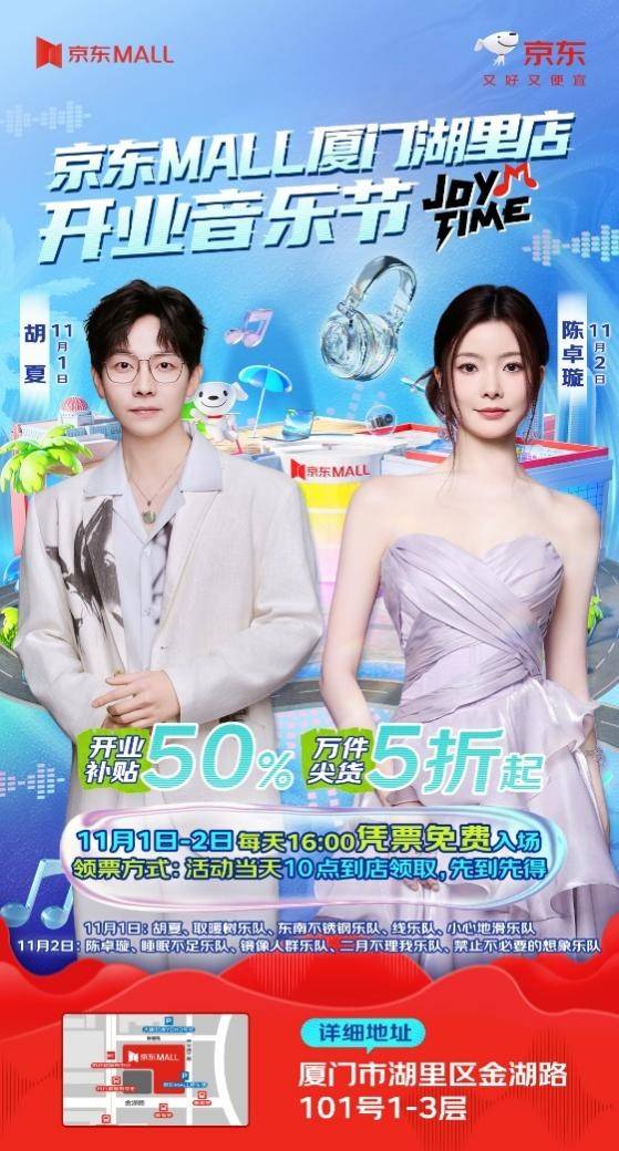 在外场,京东MALL厦门湖里店带来了海风浪漫聚场街区活动,以及打造JOY TIME音乐节,让电子音乐与海风交织,将鹭岛夜生活推向高潮。在内场,不仅有JDG伞兵水友赛,PEL第一人伞兵还将身着厦门主题队服亮相,有机会与本地玩家组队“开黑”;更有胡夏、陈卓璇、符龙飞等明星接力举办粉丝见面会,让消费者感受全方位的潮玩乐趣。