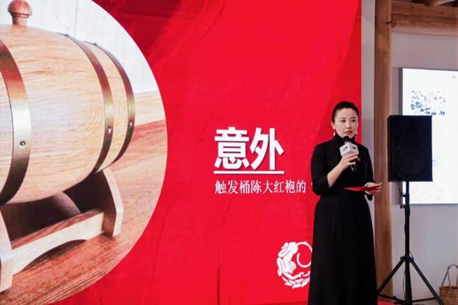 "仓储的品质决定了陈年大红袍的质量,就像威士忌70%风味来自于橡木桶。同时,大红袍的碳焙工艺与橡木桶陈化有着异曲同工之妙。丰富的香气层次,是高品质、成瘾性优质产品的共同特点。"汪静宜表示,受祁门红茶木仓陈化启发,团队在创新探索中发现,茶与桶的两种味道在同一维度并不相斥,反而能加速熟成进程,更快吸收焦糖、木质风味。通过木质风味的融合,让大红袍产生更加丰富的转化,使岩韵得到再次升华。这是一次东西方味觉智慧的碰撞与交融,能够产生全新的风味物质。