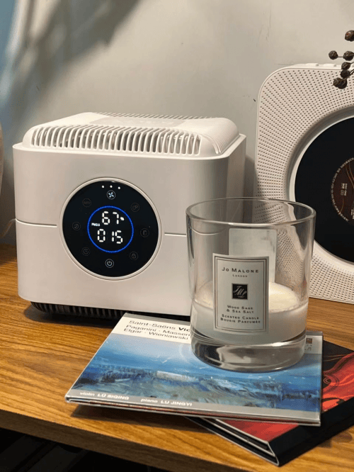 最安心的是高清数显屏,甲醛浓度从 0.12mg/m³ 降到 0.03mg/m³ 全程可见,再也不用瞎猜 “开了跟没开一样”;体积比 A4 纸还小,放工位角落不占地,USB 供电不用抢插座,睡眠档噪音 25dB,敲键盘时完全听不到,开会时开启也不影响麦克风收音。