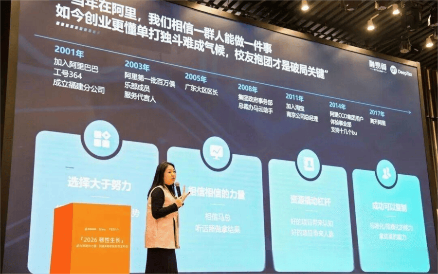 36创,由前阿里高管蔡素卿创立,是大厂创业人的加速器,专注赋能AI、出海等前沿赛道的科技创业者。 校友内外,作为阿里&蚂蚁校友的重要连接平台,由蔡素卿、倪伟等校友共同发起,致力于构建“校友帮校友”的创业中台。二者深度协同,不仅打通了资源联动的通道,更践行着“因为信任,所以简单”的初心,以“此时此刻,非我莫属”的担当,在这场年会的集结中,让每一位创业“少年”都能找到同行的同路人,将“让天下没有难做的生意”这一使命,续写在跨越周期的征途上。