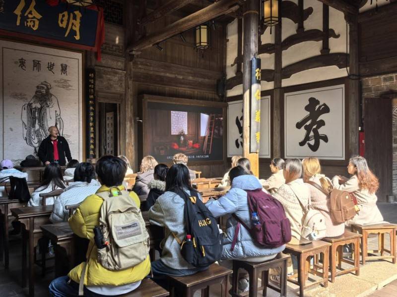 丁屋岭的夯土墙,每一道纹路都是会说话的历史,这是客家先民就地取材的智慧,也是IP设计的灵感库;卧龙书院作的“忠孝廉节”匾额、“敬业乐群”楹联,让学生们驻足良久。“孝”是客家文化的核心,“廉”是官员的底线,可以成为IP设计的精神内核;店头街的“古城烟火”记忆,藏着汀州商贸的百年故事。